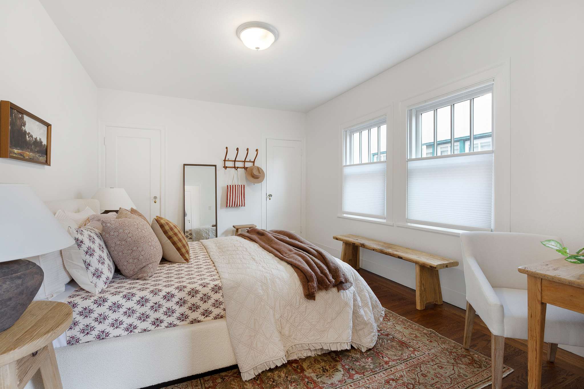 Tucked away on one of Alameda’s most delightful little courts, this storybook bungalow brims with character. Behind its inviting entry, you’ll find a sunny living room with vintage details, a generous kitchen perfect for entertaining, and a light-filled bedroom with southern exposure that soaks up the sun all day.